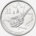 The 2008 Snowboarding Queen Elizabeth II Modern 25 Cents coin, struck at the Royal Canadian Mint mint, engraved by Susan Taylor, and made of nickel plated steel. Weighing 4.43 grams, with a diameter of 23.88 mm, and a thickness of 1.58 mm, and featuring a reeded edge.