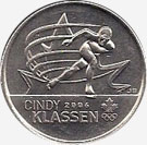 The 2009 Cindy Klassen Queen Elizabeth II Modern 25 Cents coin, struck at the Royal Canadian Mint mint, engraved by Susan Taylor, and made of nickel plated steel. Weighing 4.43 grams, with a diameter of 23.88 mm, and a thickness of 1.58 mm, and featuring a reeded edge.