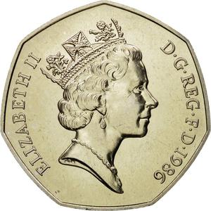 The 1997 Queen Elizabeth II 50 Pence coin, engraved by Ian Rank-Broadley, and made of copper-nickel. Weighing 8 grams, with a diameter of 27.3 mm, and a thickness of 1.78 mm, and featuring a plain edge.