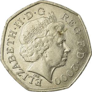 The 1998 Queen Elizabeth II 50 Pence coin, engraved by Ian Rank-Broadley, and made of copper-nickel. Weighing 8 grams, with a diameter of 27.3 mm, and a thickness of 1.78 mm, and featuring a plain edge.