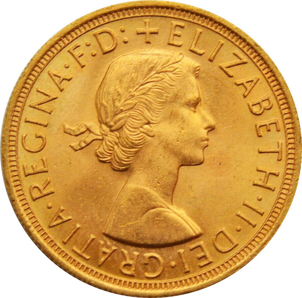 The 1964 Queen Elizabeth II Sovereign coin.