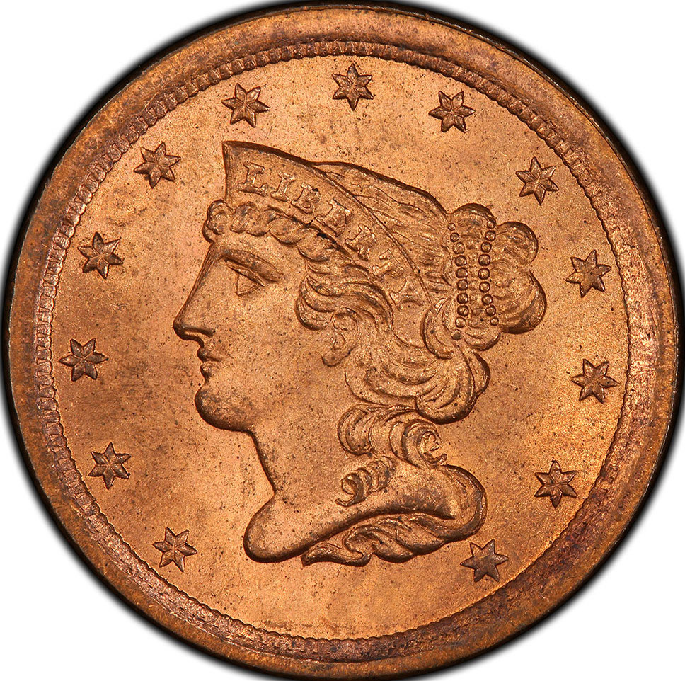 The Braided Hair Half Cent coin was produced from 1839 to 1857 by the United States Mint and is known for its well-defined imagery and strong condition. It was the last in the series of “Half Cents” struck by the United States Mint and is considered by some to be amongst the most artistic designs ever used on a coin from the United States. The design of the Braided Hair Half Cent was the creation of accomplished engraver Christian Gobrecht, who was the third chief engraver of the United States Mint. The obverse of the coin features an almost full profile view of Liberty’s head, facing left and wearing a coronet inscribed with “LIBERTY”. It is highlighted with a drapery at the back of her neck and featuring a small knob in front. The reverse of the coin displays a combined shield and arrows in a slightly curved orientation with shallow vertical lines emanating from the central section. Above the shield is an ornate laurel-leaf wreath containing the words “HALF CENT” at the top. The “1/100” value is found just below the wreath. One major factor that makes the Braided Hair Half Cent so popular is the quality of its strike. The many parts of the design on the coin, such as Liberty’s hair and the wreath, are all incredibly well-defined. This allows a collector to purchase a coin with a mirror like finish.