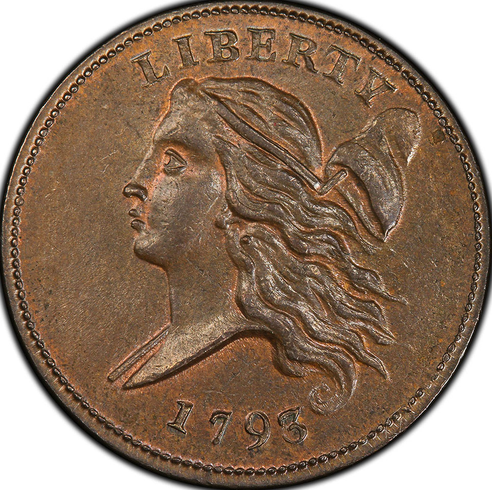 The 1793 Liberty Cap Half Cent coin, has a total mintage of 35,334, struck at the Philadelphia, Pennsylvania mint, and engraved by Robert Scot. Made of copper, weighing 6.74 grams, with a diameter of 23.5 mm, and featuring a plain lettered gripped edge.