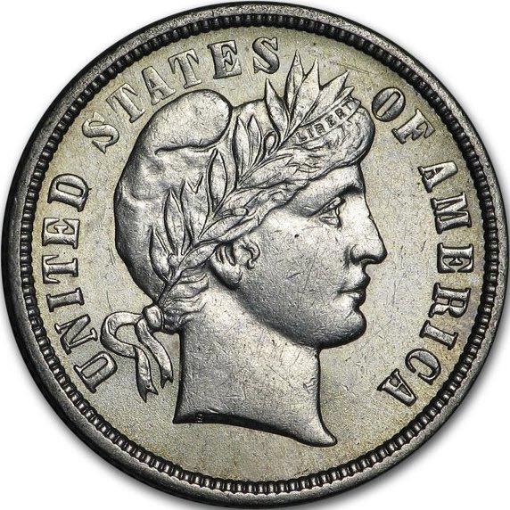 The Barber Dime was a ten-cent coin issued by the United States Mint from 1892 to 1916. It was designed by Charles Barber, Chief Engraver at the Mint from 1880 to 1917. The obverse of the Barber Dime features Lady Liberty, the god of the ancient Greco-Roman culture, facing the left wearing a Phrygian cap decorated with a beautiful headband and a ribbon that reads LIBERTY. The reverse has a designer’s initial ‘B’, the denomination ‘ONE DIME’, and a wreath of corn, cotton and other agricultural crops.