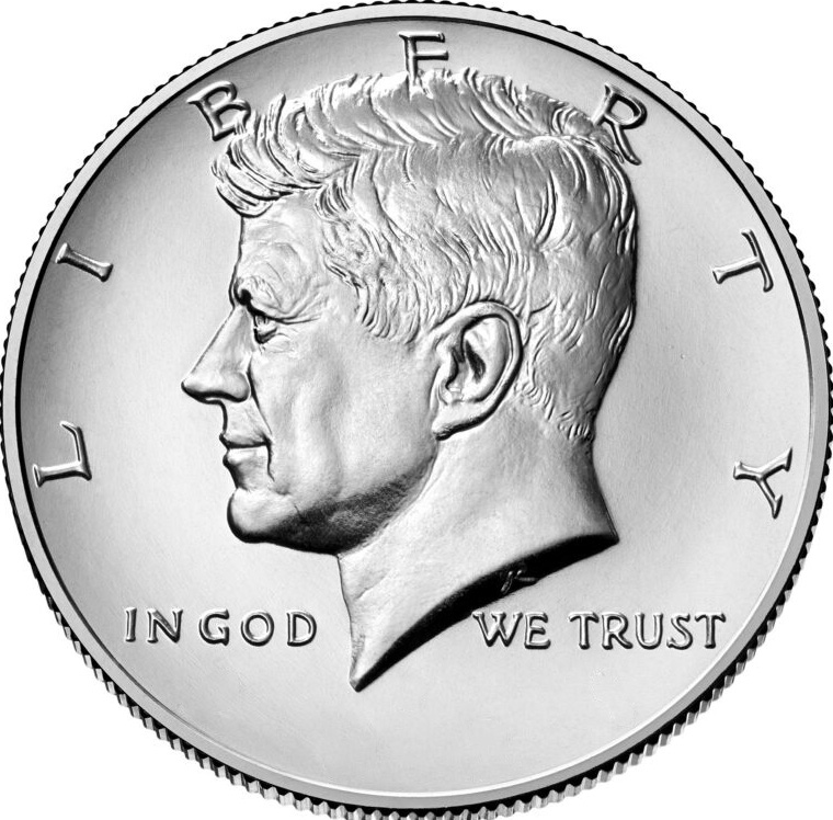The main design of the Kennedy Half Dollar remains unchanged from the original coin. It depicts a left-facing portrait of President Kennedy, with the words “Liberty” and “In God We Trust” inscribed on the rim. At the top of the design is the inscription of “John F. Kennedy”, while the year of minting appears at the bottom.