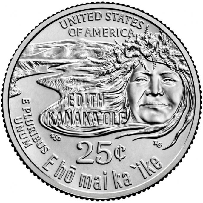 The 2023-D Edith Kanakaʻole Modern Quarters coin, has a total mintage of 368,600,000, struck at the Denver, Colorado mint, and engraved by Laura Gardin Fraser. Made of copper-nickel clad copper, weighing 5.67 grams, with a diameter of 24.26 mm, and a thickness of 1.75 mm, and featuring a reeded edge.